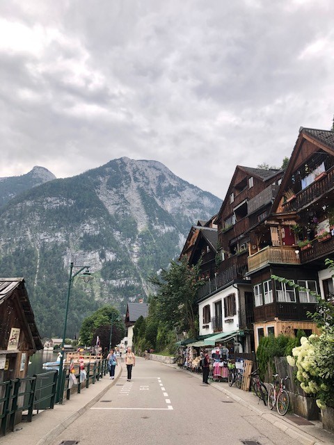 Il est vrai que Hallstatt nous a semblé être une ville magique, et qu’à cause de la montagne entourée des vieilles cabanes toutes en bois, des fleurs blanches, violettes et rouges ajoutaient un peu de couleur au ciel gris. Même s’il y avait beaucoup de monde, je pense que l’on a aimé nous promener dans les rues à la découverte des richesses de la ville. Un endroit qui a retenu mon attention a été le cimetière de la chapelle Saint-Michel, un espace étroit mais plein de crânes humains peints et empilés dans tout les coins. Je ne peux pas dire que c’est un endroit froid ou glauque parce que ce n’est pas ce que j’ai ressenti, mais à l’intérieur, des questions me sont venues. La première était Pourquoi? La seconde, Qui a eu l’idée? Intéressant, surtout qu’il y avait de vieux crânes de plus de trois cents ans.